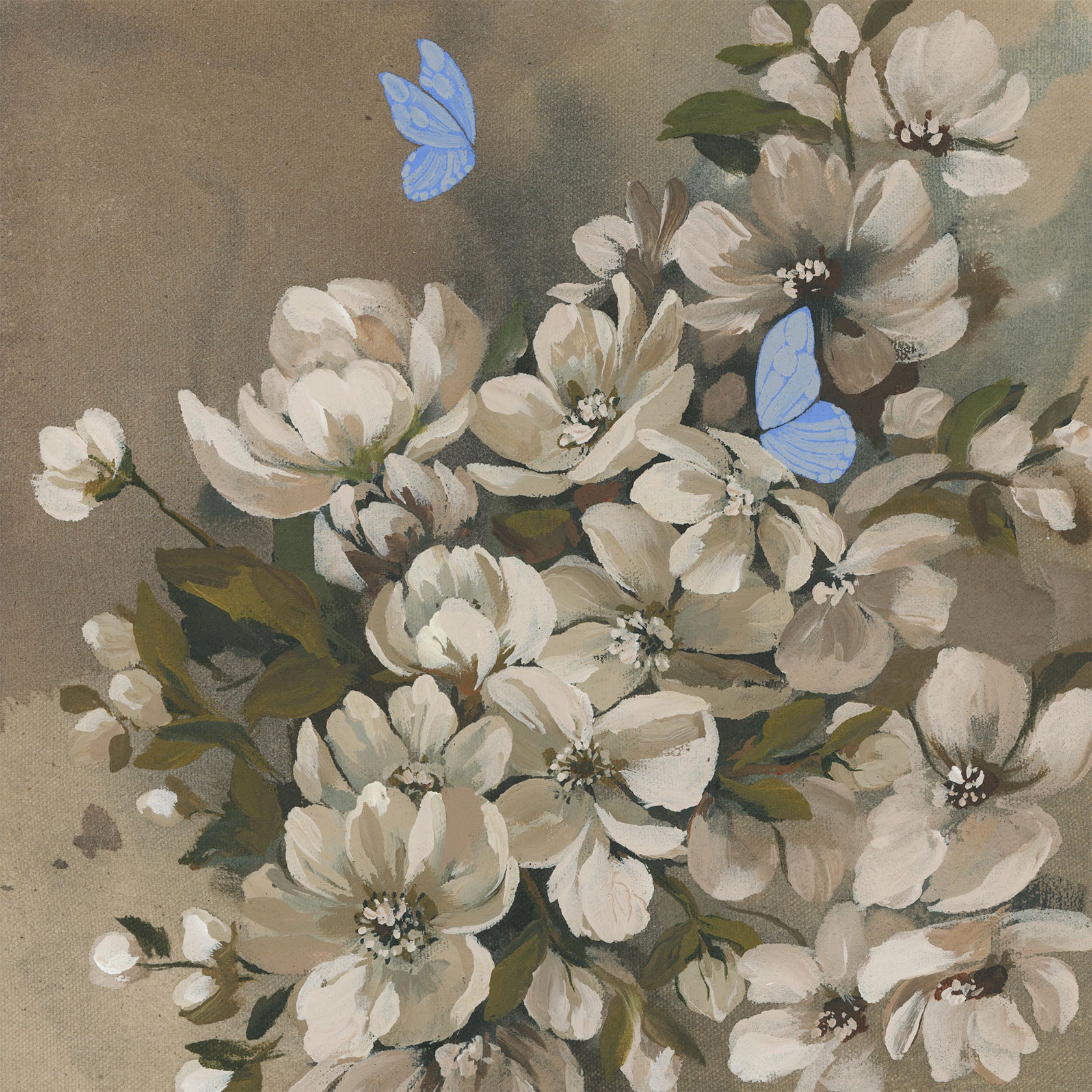 These artworks honor the tender transition from holding to releasing, from becoming to simply being. The soft florals represent grounded maturity, while the blue butterflies signal the arrival of openness, lightness, and renewal. Together, they portray a stage of flourishing that is not just personal, but shared.