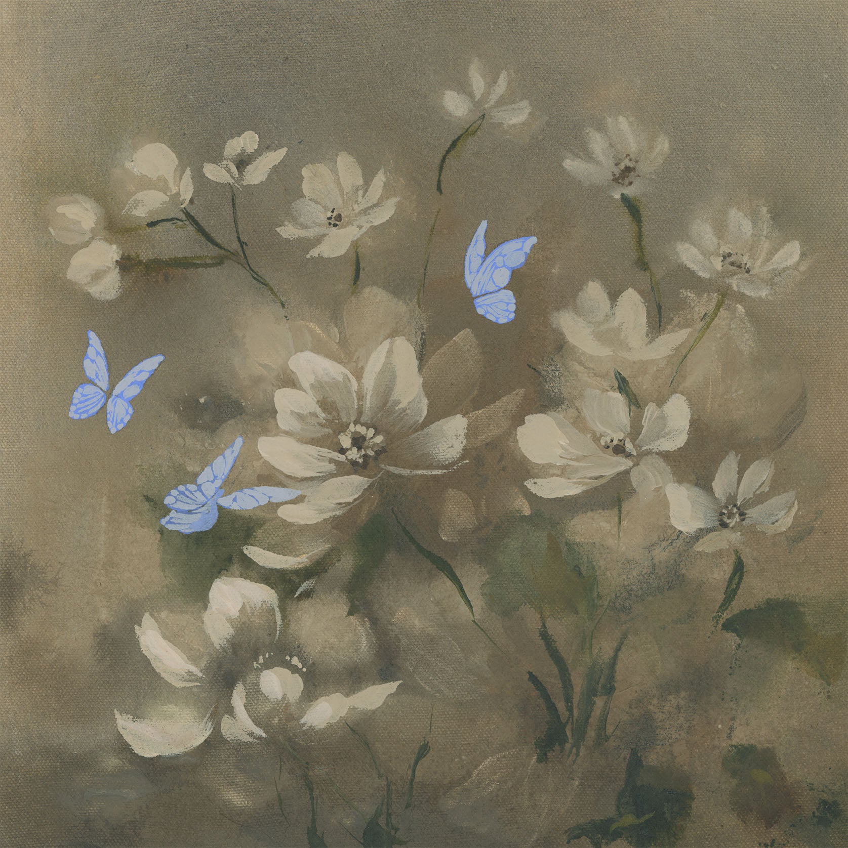 These artworks honor the tender transition from holding to releasing, from becoming to simply being. The soft florals represent grounded maturity, while the blue butterflies signal the arrival of openness, lightness, and renewal. Together, they portray a stage of flourishing that is not just personal, but shared.