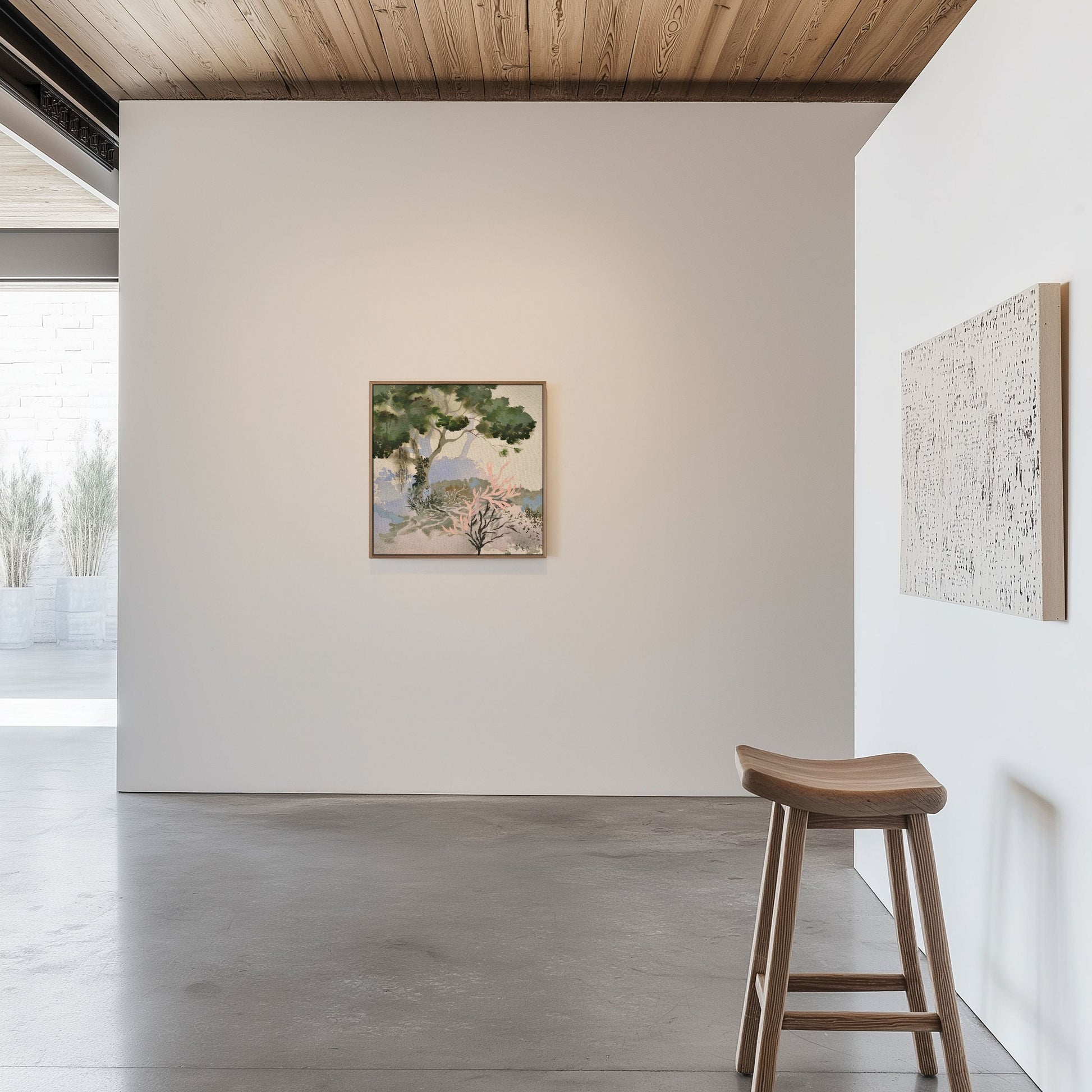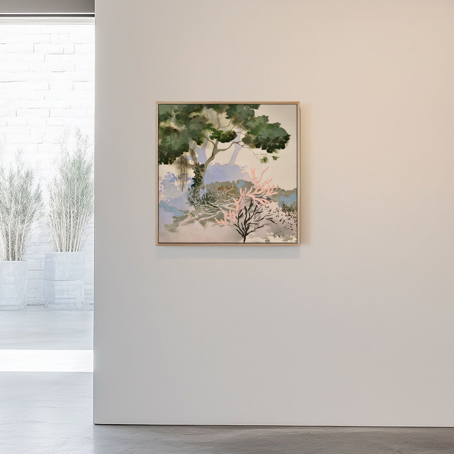 This original artwork is created with acrylic paint on cotton canvas. It is presented in a custom solid wood floating frame—available in walnut, oak or ash—and arrives ready to hang with D-hooks and wire installed. *Please refer to the artwork details above to confirm the specific frame finish. The listed price includes framing.